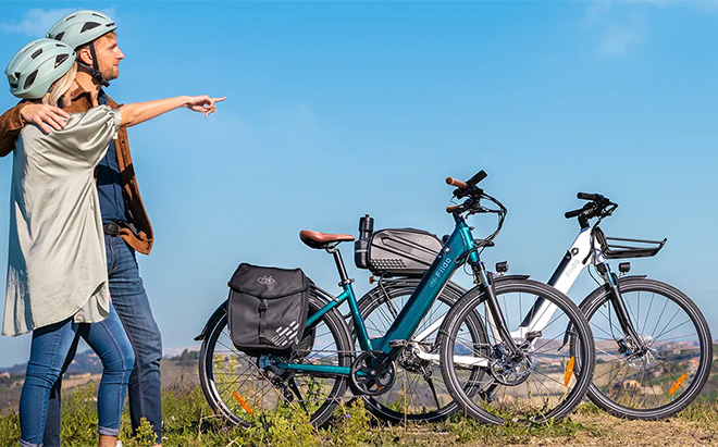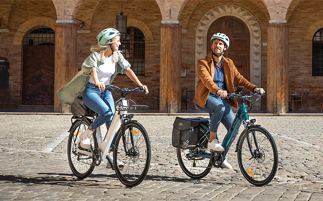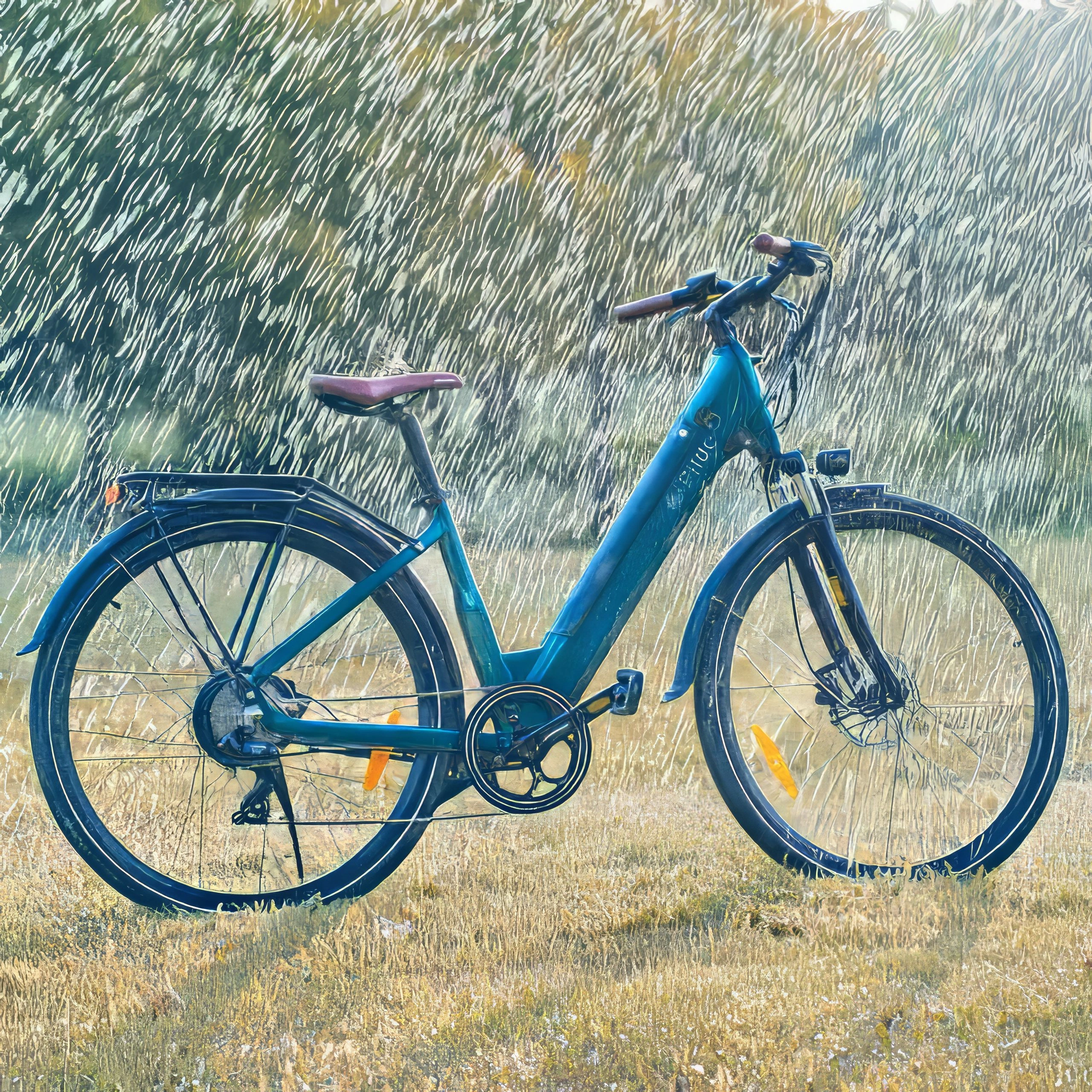Das Fiido C11 Pro ist in wunderschönem Smaragdblau mit braunen Sitzen und Griffen erhältlich, die ihm einen klassischen Look verleihen. Es ist auch eine weiße Version erhältlich. Der durchgehende Rahmen erleichtert das Auf- und Absteigen, während die 700-cm-Laufräder für ein schlankes Design sorgen. Ein versteckter Akku, komplette Schutzbleche und ein eingebauter Gepäckträger machen das Rad praktisch, ohne dass es unschön aussieht.