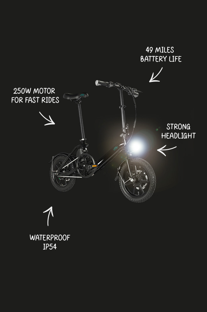 Fiido D3 Pro Mini Foldable Electric Bike - 250W Leistung | 7.8Ah Batterie | 15.5mph Geschwindigkeit | 37mi Reichweite