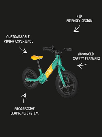 Wenn sich die Fähigkeiten Ihres Kindes verbessern, schaltet sich der Power-Assist-Modus ein, der eine sanfte motorische Unterstützung bietet, wenn das Fahrrad eine Schubkraft erkennt.
